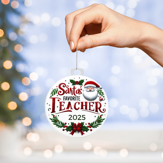 Santa's Favorite Teacher Ornament Year 2025