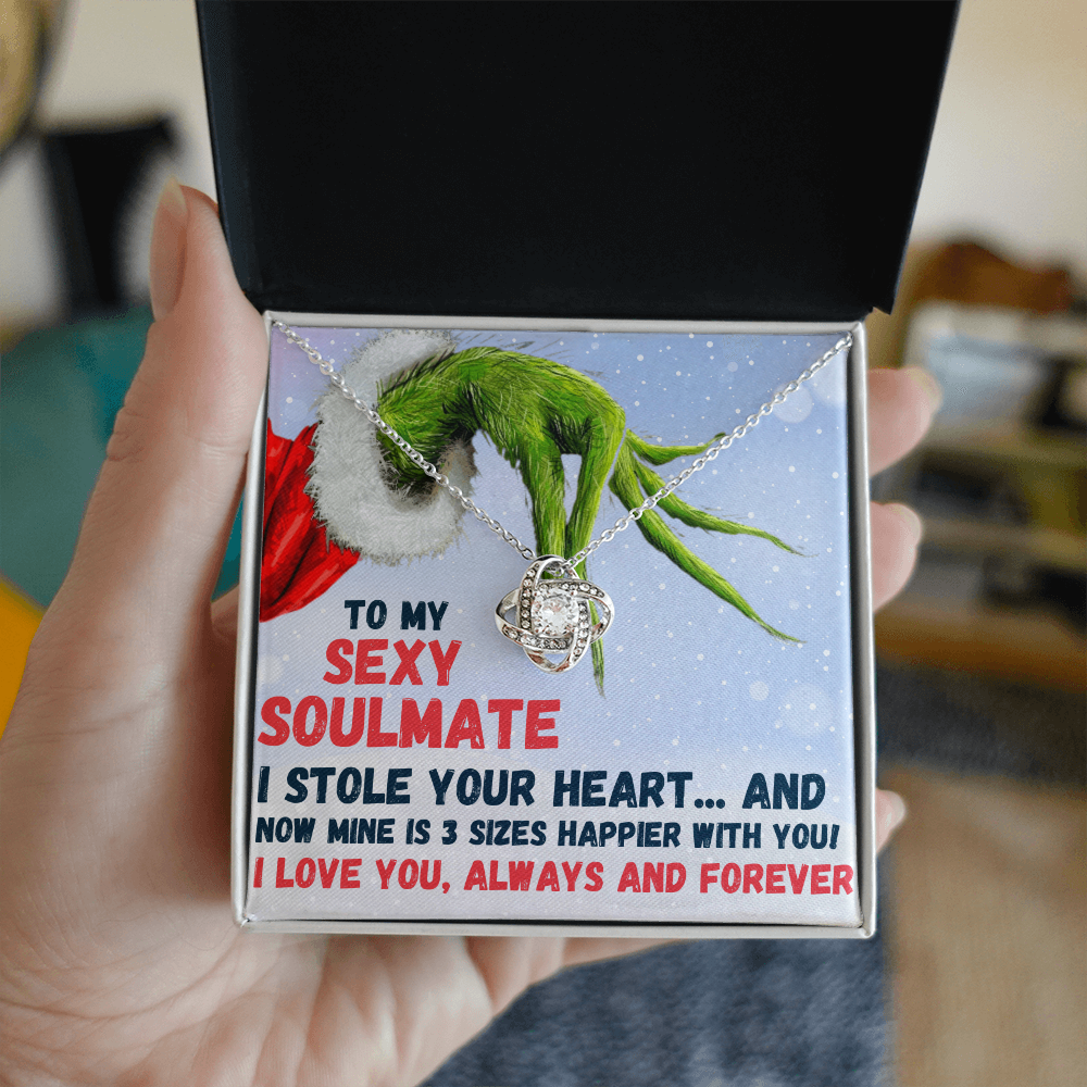 This holiday season, move past generic presents and gift your soulmate an emotional keepsake she'll cherish forever. When she opens this elegant box, the stunning Love Knot Necklace will be secondary to the heartfelt, personalized message printed right inside.